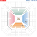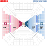 1階席は、マス席という4人用の座席が中心で東西南北にそれぞれ15列あります。またマス席の前にはタマリ席と呼ばれる座布団がひかれた席が6列、マス席後ろにはボックス席と呼ばれるテーブルにイスが設置された半個室があります。